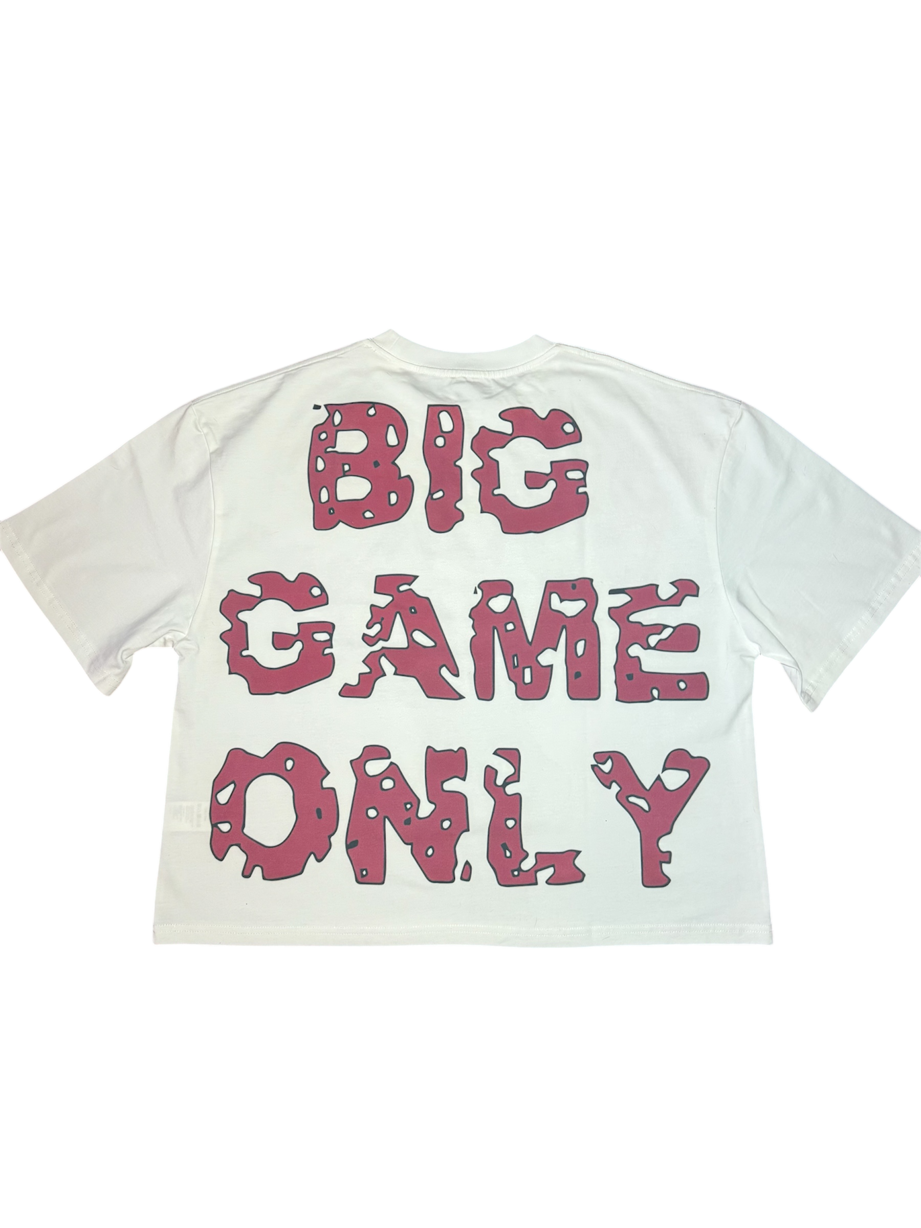 White "big game only" cropped tee
